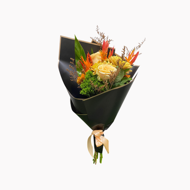 Deze magische mix van luxe rode, gele en oranje bloemen barst van de kleur, textuur en persoonlijkheid. Het is een tropische traktatie die de ontva...